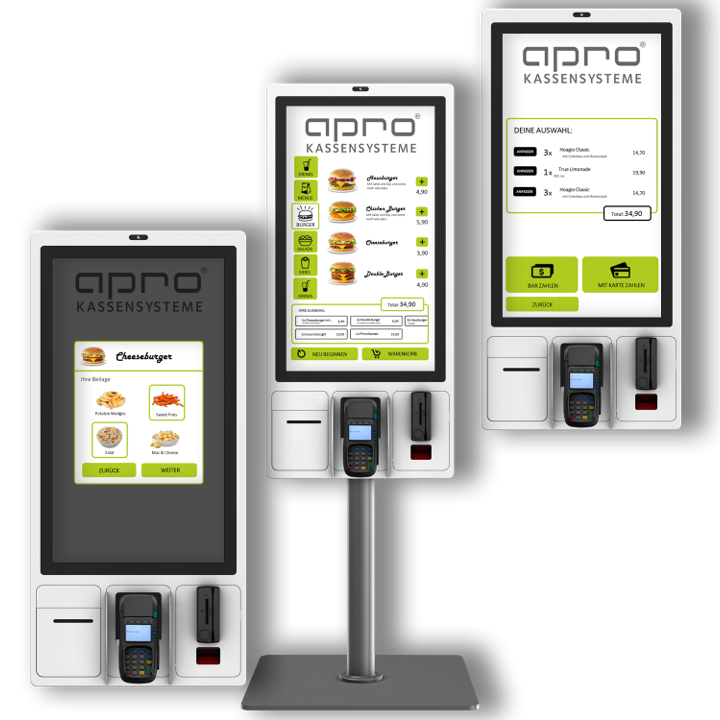 Hier wird Gastronomie neu geschrieben! APRO® bietet jedem Gastronomiebetrieb die Möglichkeit, Gäste per Kiosk selbst bestellen zu lassen. Gerade zu Stoßzeiten schafft die Selbstbedienungsmöglichkeit zusätzliche Personalentlastung und in Kombination mit dem APRO® Bestellmanager mehr Bestellabwicklungen in kürzerer Zeit!